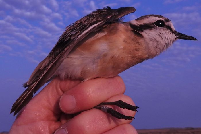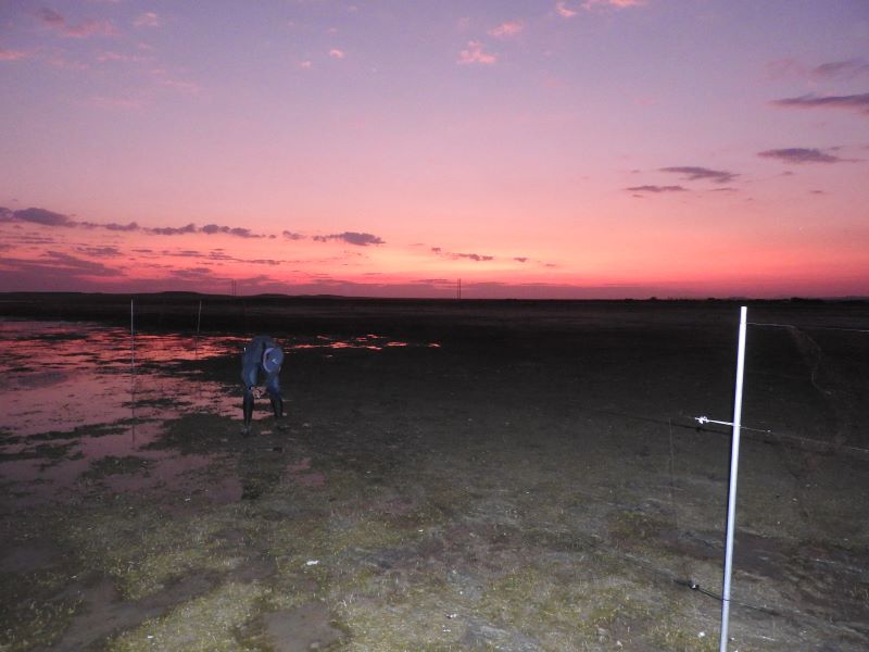 The total number of birds caught was 246 birds of an amazing 31 species. The top species caught was the Cape Sparrow (52), followed by Southern Masked-Weaver (45) and Southern Red Bishop (41). Starlings featured well with Pied Starling (26) and Wattled Starling (15). Wader nets on the shore line produced a few Kittlitz’s Plover and Little Stint, and also unexpected birds like Capped Wheatear. Ringing in the Karoo shrub gave the best species like Rufous-eared Warbler, Grey-backed Cisticola, Black-chested Prinia, Karoo Scrub-Robin, Long-billed Crombec, African Pipit and Lark-like Bunting. A highlight for me was spot-lighting and catching a Double-banded Courser (after an unsuccessful attempt!).