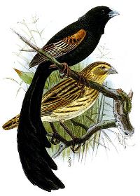 IntroductionJackson’s Widowbird was formally described by Richard Bowdler Sharpe, an English zoologist and ornithologist who worked as curator of the bird collection at the British Museum of natural history.The Jackson’s Widowbird was collected by Frederick John Jackson, an English administrator, explorer and ornithologist. In 1889 Jackson led an expedition designed to open up the regions between Mombasa and Lake Victoria, which was largely unknown to Europeans at that time, and if possible to obtain news of Emin Pasha. He travelled towards Lake Victoria, reaching Lake Naivasha in Sep, and continued up the escarpment to Lumbwa on 14 Oct 1889. Here Jackson obtained the first Jackson’s Widowbird, a male. Jackson then went north and east to travel around the Lake Victoria to Mt Elgon, where he collected new bird species, including the Brown-capped Weaver (which was described by Sharpe a few months before describing this widow). On Jackson’s return from Uganda through Kenya, along the Rift Valley lakes. He passed Lake Baringo in June 1890 and then collected more specimens of Jackson’s Widowbird flocks in the grasslands near Lake Nakuro and again at Lake Elmenteita (the males were in breeding plumage). Jackson reached Lake Naivasha on 27 June 1990. The specimens from Nakuro and Elmenteita are labelled as 22 Jul 1890 but this should be June 1890, based on his travel itinerary. The first illustration of Jackson’s Widowbird was of the male syntype, published by Sharpe (1891). The next illustration was of the eggs of this species in Ogilvie-Grant (1910). Scientific citationDrepanoplectes jacksoni Sharpe 1891a, Ibis p.246, pl. 5, Masailand, near Lake Nakuru, western Kenya Colony. Meaning of namesjacksoni, Named after Sir Frederick Jackson (1860-1929) Governor of Uganda, 1911-1917, naturalist, collector, and author. First English nameJackson’s Whydah (Shelley 1905b). Alternate namesDancing Whydah, Jackson’s Dancing Whydah, Jackson’s Whydah. CollectorFrederick John Jackson. Date collected14 October 1889 and June 1890. Locality collectedMasailand (Lakes Nakuru and Elmenteita, and Lumbwa), Kenya. Type specimensSix syntypes are in the British Museum (eg BM 1893.12.1.3), and Tervuren Museum. |