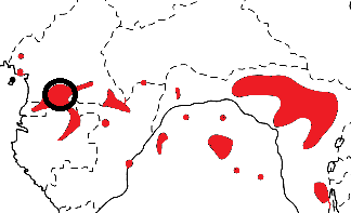 Red-crowned Malimbe distribution, type locality circled
