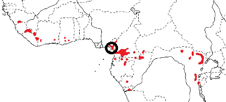 ![]() ![]() Identification. The Preuss’s Weaver is a small ‘nuthatch weaver’. The male has a black mask with an orange crown and forehead. The male differs from the very similar Brown-capped Weaver by its chestnut forehead merging gradually into yellow on the nape and it has a chestnut patch (instead of yellow) on the lower throat. The Preuss’s Weaver male differs from the Yellow-capped Weaver in having a yellow (not black) rump. The female Preuss’s Weaver has a black mask and band across the forehead, with the rest of the crown yellow, while the Brown-capped Weaver and Yellow-capped Weaver females both have black crowns. The juvenile Preuss’s Weaver has a yellow-olive head and pale bill. Distribution. The Preuss’s Weaver occurs in West and central Africa, from Guinea to DRCongo (see map above, based on Birds of Africa). No races are currently recognised. Its distribution is very patchy, since its forest habitat is fragmented and reduced throughout its range. Habitat. The Preuss’s Weaver inhabits the canopy of primary and secondary forests. It occurs alongside the Red-headed Malimbe in Liberia, foraging in a similar manner, and with the Yellow-capped Weaver in Cameroon. Adults are usually found in pairs, or in groups of 1-4 birds which may be family parties, and in mixed-species flocks. Food. The Preuss’s Weaver feeds mainly on insects, including eggs and larvae, grasshoppers and caterpillars. It also feeds on spiders and other bark-living arthropods. Hard seeds, perhaps from a berry, and a large earthworm have also recorded in its diet. The Preuss’s Weaver runs along branches covered in epiphytes, gleaning on alternate sides, and hangs upside down on occasion. It also forages on boles of forest trees, and on dead trees. Breeding. The Preuss’s Weaver is monogamous and a solitary breeder. Only one nest has been described, as a ball made almost entirely of greyish green Usnea. The nest was bound together with strips of palm leaves. The nest entrance is below, without a tunnel. The nest was fastened securely to small branches, 11 m high in a small tree. The eggs have not been described. Both parents feed the nestlings. |