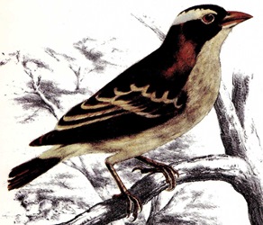 IntroductionThe White-browed Sparrow-weaver was collected and formally described by Andrew Smith, a Scottish surgeon, explorer, ethnologist and zoologist. Smith organised an expedition to the interior and he travelled to near the Botswana border in 1834-35, collecting many new birds, reptiles, mammals and other taxa along the way.Smith described the White-browed Sparrow-weaver from between the Orange River and the Tropic (Smith 1836) and later he described the locality as ‘upon a tree on one of the tributary streams of the great northern branch of the Orange River’ (Smith 1841). Smith crossed the Vaal, Modder, Black Modder and the Riet rivers (Smith 1836: 15) on his journey between Thaba Nchu and Philippolis on 4-17 December 1834. From his diary, it is clear that Smith moved east from Thaba Nchu until he reached the Modder River (Oschadleus 2007). He stayed here a few days collecting specimens, including the White-browed Sparrow-weaver, then moved south-east to Philippolis (Kirby 1939). Macdonald (1957) correctly restricted the type-locality to the Modder River near Bloemfontein. Clancey (1957, 1959) incorrectly changed this to the confluence of the Modder and Riet rivers, because he thought that Smith did not cross the Modder River near Bloemfontein. Clancey based his supposition on the map in Kirby (1940) where the upper reaches of the Modder River are not shown, but he did not read the diary. The first illustration of a White-browed Sparrow-weaver was published by Swainson 1837, based on a specimen Smith sent to England. The first colour illustration was published by Andrew Smith in 1841 in his well known work, Illustrations of the Zoology of South Africa, and the White-browed Sparrow-weaver was painted by George Henry Ford. Scientific citationPlocepasser Mahali Smith 1836; Rep. Exped. Centr. Africa, p.51; ‘country between the Orange River and the Tropic’ = Modder River, Thabanchu, South Africa. Meaning of namesmahali – no explanation given by Smith, not a Latin name, probably based on an African name. First English nameThe Mahali Philagrus (Reichenbach 1863). Alternate namesBlack-billed Mahali Weaverbird, Black-billed Sparrow Weaver, Kismayu Sparrow-Weaver, Stripe-breasted Sparrow Weaver, White-browed Weaver Bird, White-crowned Weaver-Bird. CollectorAndrew Smith. Date collected6 Dec 1834. Locality collectedModder River, near Thaba Nchu, Free State, South Africa. Type specimensThere are at least 3 syntype specimens in different museums: BMNH 1845.7.6.132, ANSP 14256 and ANSP 14257. |