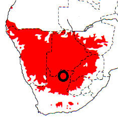 Identification. There are two species in the genus Sporopipes, this name meaning “to look for seeds”. They are very small, social weavers of semi-arid parts of Africa. Both species have moustachial stripes but they do not overlap in distribution. The sexes are alike. The young have the crown and forehead dull grey-brown with no scaling, and the malar stripes are absent. Distribution. The Scaly-feathered Finch is found through southern Africa and the extreme southern parts of Angola and Zambia. There are disjunct populations in the Eastern and Western Cape. For changes in abundance in South Africa, see here. The Scaly-feathered Finch has no recognised subspecies, although several have been proposed in the past. Habitat. The Scaly-feathered Finch inhabits dry Acacia savanna, arid scrub and bush along dry watercourses, and shrubs near houses. This species is found in pairs or flocks of up to 20 birds, and it regularly flocks with waxbills. Scaly-feathered Finches sleep communally in a nest through the year, with up to 12 birds using one nest, to keep warm on icy winter nights. Resting in the nest during the day also enables the birds to avoid the hottest times in summer. Food. The Scaly-feathered Finch forages on the ground, feeding mainly on small seeds, with insects being fed to their young. They drink when water is available but, remarkably, they can survive for months without drinking as they can produce metabolic water from their diet of dry seeds. ![]() Breeding. The Scaly-feathered Finch is monogamous, and some courtship behaviour resembles that of waxbills. It is suspected to be a cooperative breeder, but this needs to be investigated. The Scaly-feathered Finch nest is an untidy, rugby-ball shaped mass of grass stems and grass seed heads. There is usually one nest, but sometimes nests from previous seasons may be present. The nest is placed in trees or bushes at 1-4 m above the ground. It may use May the old cup nest of a shrike or flycatcher and build a roof over it. The incubation period is fairly short at 10-12 days, as is found in many passerines in arid areas. Incubation is by the female, while both sexes feed the nestlings. The young continue to sleep in the nest for several weeks. |