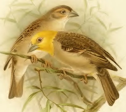 IntroductionThe Sakalava Weaver was formally described by Karel Johan Gustav Hartlaub, a German physician and ornithologist.The Sakalava Weaver had been collected by Victor Sganzin, a French naval officer and zoologist. Sganzin was appointed as military administrator of the French outpost at Sainte Marie island (Madagascar), and he explored the Malagasy fauna from 1831-1832 (Sganzin 1840), collecting many bird specimens. When Sganzin returned to the Cape, he gave the Sakalava Weaver specimen to Jules Verreaux (at the South African Museum). It must have been sent to the British Museum at some stage. It was overlooked as a new species for many years, until the head ornithologist of the British Museum, George Robert Gray, pointed it out to Hartlaub (Hartlaub 1867), who was writing about the birds of Madagascar (Hartlaub 1861). The first illustrations of the Sakalava Weaver were published by Edwards (1879). The first plate contained line drawings of the wing, head, bill and foot. This was followed by a colour plate of a male and female. Scientific citationPloceus sakalava Hartlaub 1861, Beitr. Faun. Madag., p.54 Madagascar. Meaning of namessakalava – After the Sakalava (“people of the long valleys”), a native clan of Madagascar whose kingdom, established in the sixteenth century, was subdued in 1824 and incorporated into a united Madagascar. First English nameSakalava Weaver-bird (Sibree 1891), decades after it was first described. Alternate namesSakalava Fody. CollectorVictor Sganzin. Date collected1831-32. Locality collectedMadagascar. Type specimensThe type specimen is in the British Museum (BM 1845.7.6.10). |